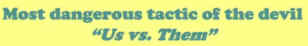 Even if we’re one people, even if we’re one church, the Devil’s most dangerous tactic is Us vs. Them. In World War II, the Germans, who regarded themselves as a superior race, killed six million Jews. During elections, we get divided because of our political opinions.
